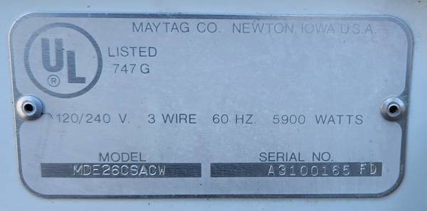 SPEED QUEEN 27LBS. MODEL: SC27MD2AU20001 Serial No: 0896087232