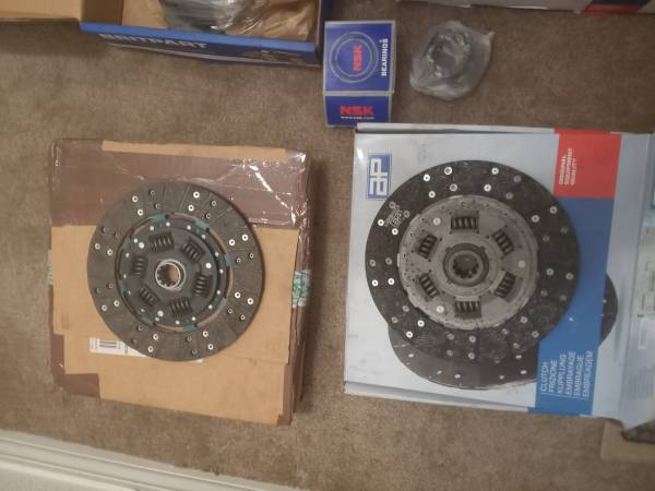New clutch both sizes, 3 pressure plates, through out bearing, brake Master cylinder, brake shoes, wheel cylinder rebuild kits, drive shaft u joints, slave cylinder....$100........ half price on...