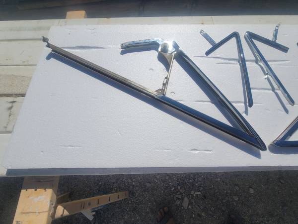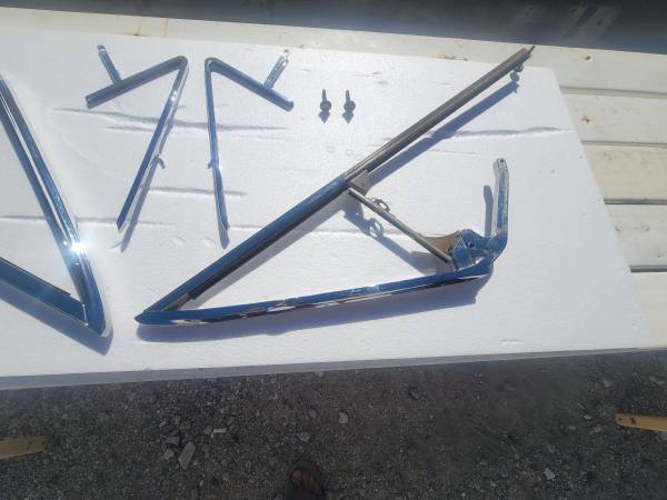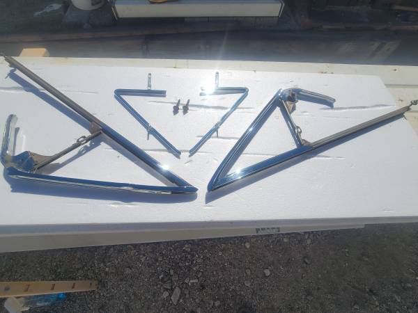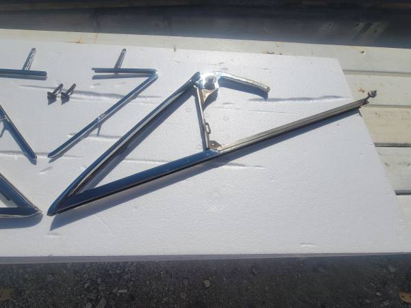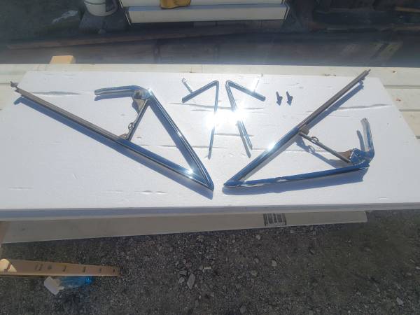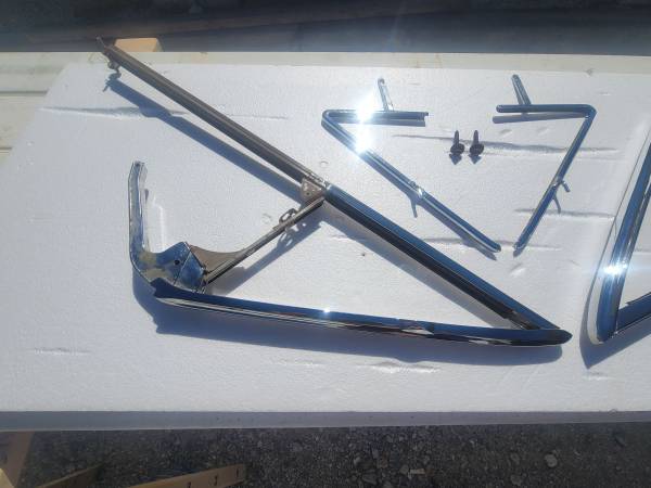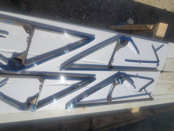 1963-64 impala convertible vent/wing window frames completely restored triple chrome plated and the stainless steel has been removed and polished and assembled comes with hardware for installation