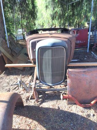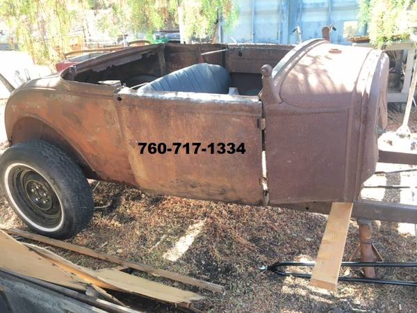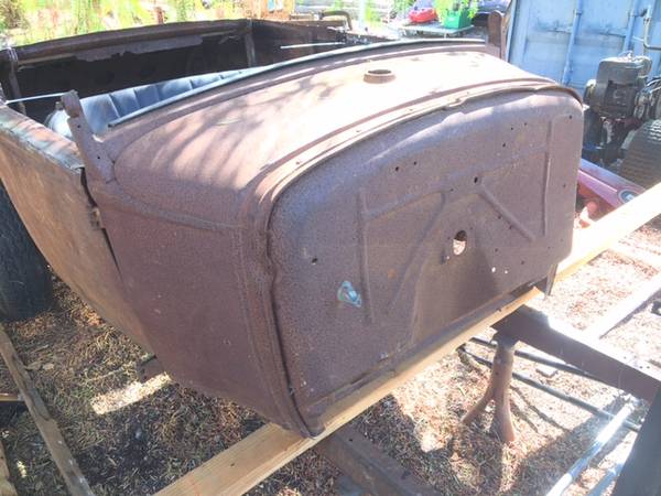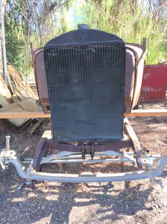 1930 Ford coupe/roadster project…All steel body and parts which include rumble seat brackets,suicide door latches,bolt on or weld on(your choice) headlight stands,1934 Ford headlights,good 4 row radiator with no leaks.GM 10 bolt rear end with wheel spacers,NEW old chrome dropped front axle with tie rod and drag link with all tie rod ends,rebuilt Corvair steering box,,hair pins,bat wings,perches with lower shock mount attachments,Chevy spindles with king pin set and bearings and bushings,cross over spring,new 1932 grille shell with insert,stock dash and gauge cluster panel,windshield with chrome stanchions,nice deck lid,new floor panel,seat frame with donor seat,,chrome dual master cylinder with new aftermarket pedal assembly,Hurst style cross over engine mount with attachment brackets and pads.Car has an original roadster cowl section,a 1930 coupe rear section with modified doors,steel rear fenders.Local delivery available,if needed.No papers.