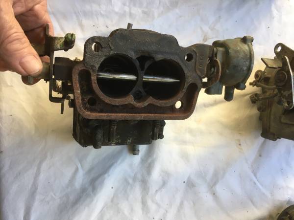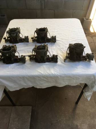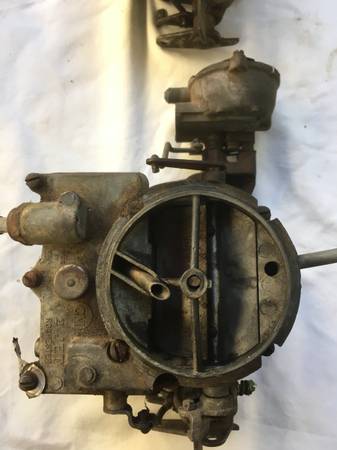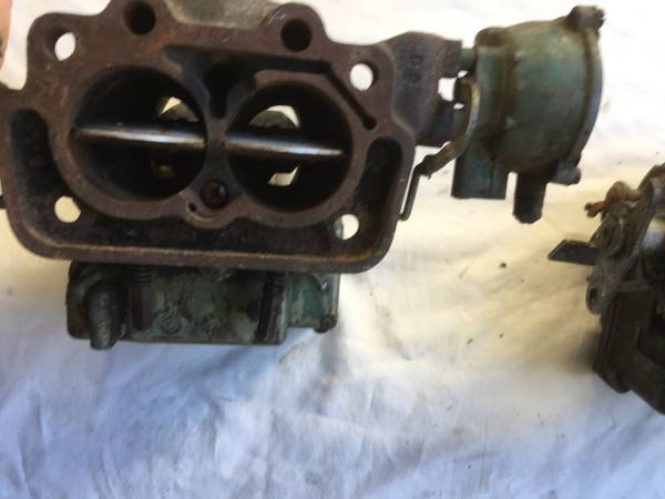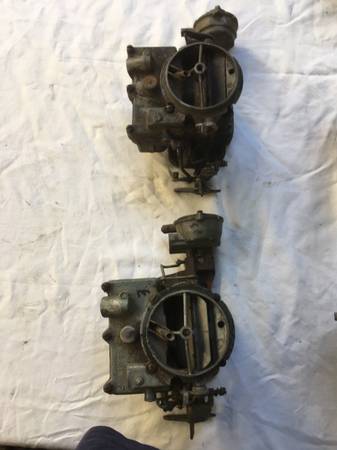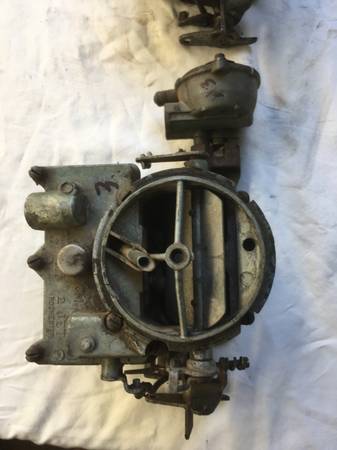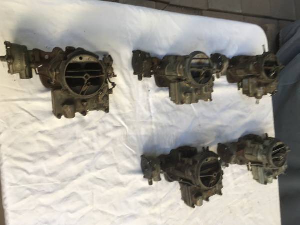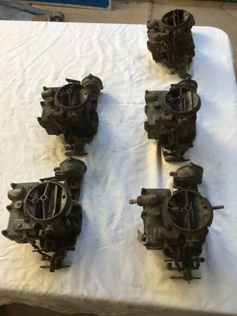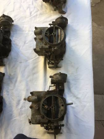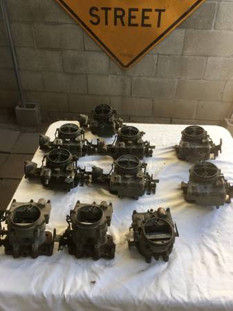 I have ten used vintage Rochester Carburetors for sale with four adapters. All in various condition. Five are pretty much complete with the manual chokes. All are large base plates. One does not have a plate. I believe these plates were used on Buicks, Pontiacs, or Oldsmobiles. Not a hundred percent sure. Please refer to the pictures. Two do not have the flapper valves. Sold as a bundle no picking or choosing. The other three are for parts only. Please ask any questions. Sold as is. No fund. No warrant or guarantee. Please no scams robot or any other games. If the listing is up the items are still available please don't ask. Asking 500.00 dollars OBO. Thanks