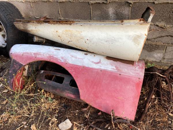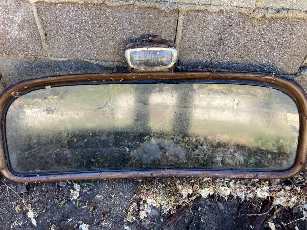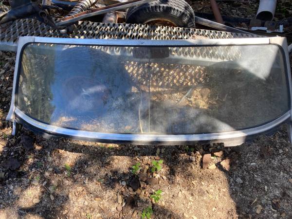 Two different MG windows. Curved windshield fits ‘62 - ‘67.windows. great chrome framing with rear view mirror and the other is flat glass with a cool light. Glass is good on both. Two front fenders left and right