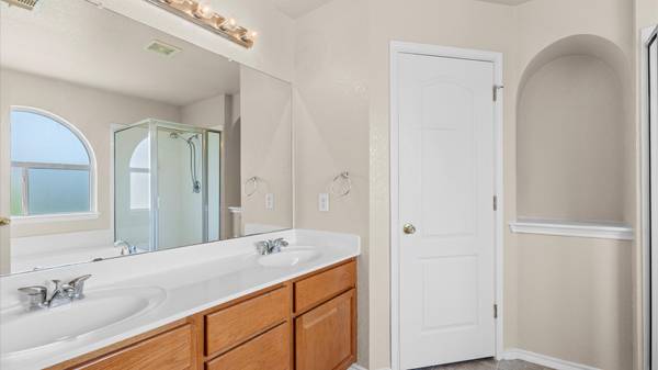 BEAUTIFUL 4 BEDROOM 2 AND 1/2 BATH HOME IN FALCON RIDGE SUBDIVISION IN CIBOLO. ALL BEDROOMS ARE UPSTAIRS INCLUDING THE LAUNDRY ROOM. THE PRIMARY BEDROOM INCLUDES A LARGE BATHROOM WITH A SHOWER, SEPERATE GARDEN TUB AND A DOUBLE VANITY SINK. OPEN KITCHEN WITH AN ISLAND. FORMAL DINING AREA. CERAMIC TILE ON THE MAIN FLOOR. EAT-IN KITCHEN AREA. OUTDOOR HAS A COVERED PATIO, PLUS ADDITIONAL OPEN PATIO AREA