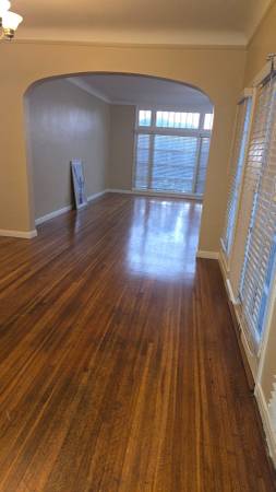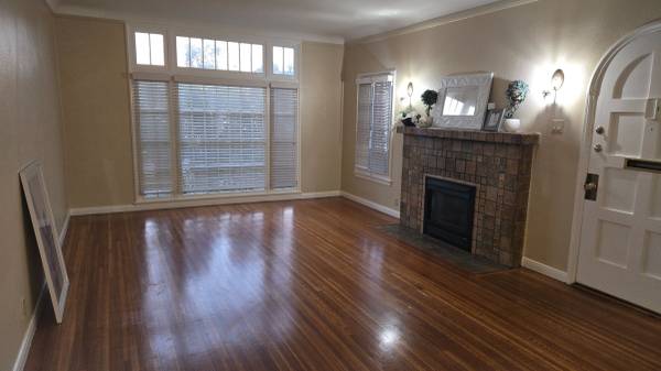 Spanish style quadruplex located in Miracle Mile/Hancock Park adj. Lower unit w/approx. 1,500 sq. ft. Spacious living room w/barrel coved ceiling and Batchelder fireplace. Formal dining room. Eat-in cook's kitchen w/tile countertops and stainless steel appliances. Indoor laundry w/washer and dryer. Gleaming hardwood floors in living room/dining area; and carpet in both bedrooms. Designer ceiling fans in bedrooms. Closet space galore. Freshly painted. Light, bright and airy. Great curb appeal. Quaint outdoor patio. Onsite parking for one car. Centrally located to downtown and the Westside. No smoking. Available for occupancy Oct. 15th. Prescreening required.