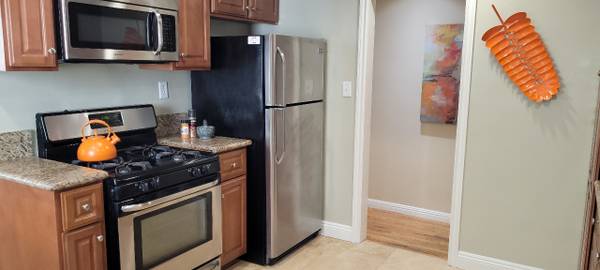 Located in the Mid-City neighborhood of Los Angeles, this property sits on raised foundation above the street. It includes two bedrooms and a full-size bathroom. The spacious living room with a tray ceiling its double door entry adjoins a large dining room. The updated kitchen has maple cabinets, imported granite countertops and Frigidaire stainless steel appliances (refrigerator, stove, microwave and dishwasher). The laundry closet has a washer and dryer. Long 20ft hallway--great for wall art. The duplex includes updated electrical, plumbing, central heat, double pane windows (noise reduction & energy efficiency), custom solid core front double doors w/designer hardware, custom wrought iron railings (front & side entry), Mexican pavers w/decorative multi-color tiles on front steps & porch, hardwood floors, Benjamin Moore interior/exterior paint, base boards & crown molding, interior doors & hardware, refaced cabinets in hallway & closets, designer light fixtures & recessed lights. Window blinds. Walk-in closets. Light, bright & airy. Feels like a home. Professional landscape in front & rear yards w/automatic irrigation system. Tranquil private backyard w/two-tier open shared patio. Detached garage w/roll top door. No pets or smoking. Unit available for occupancy--mid November. Prescreening required for showings.