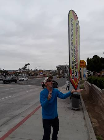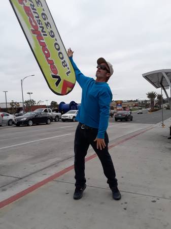 My name is Kevin and I am a professional sign spinner. I have over 15 years of experience. My best day was 40 new customers in a day at Haven cannabis shop. Over 120 new customers in a week. I am not like other sign guys. I do tricks, dance and wave. I am the hardest working spinner in Los Angeles. I don't spend the day looking at my phone. I have worked for all the major companies and I have been a sign spinner on TV and the movies. Email me for more information. The closer you are to El Monte the lower my rate will be. Thank you for your time.
