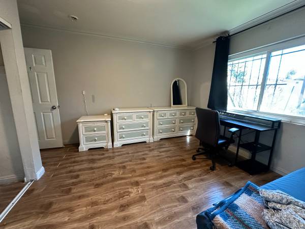 Fully furnished room includes dresser, desk, chair, bed, sofa.