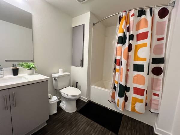 The apartment comes fully furnished, so just bring your clothes and personal items. Everything else will be provided for you. The kitchen is fully equipped with all of the necessities, including appliances and tableware. Your bedroom also comes ready for your arrival, with a brand new bed sheet set, comforter, and towel set upon move-in.