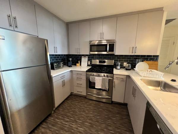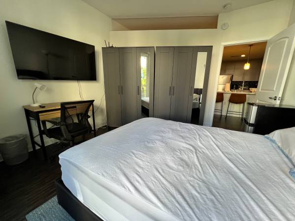 This furnished luxury suite is an opportunity you do not want to miss. Experience living in an unbeatable location along with access to newly remodeled amenities, including a fully-equipped fitness center, rooftop deck, covered parking, and bike racks.