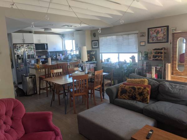 You'd be moving in with 1 woman, 2 men, 1 cat, all of whom are relaxed, sociable, space-sharing roommates; we’ll all occasionally have friends over for dinner, movie nights, and board games.