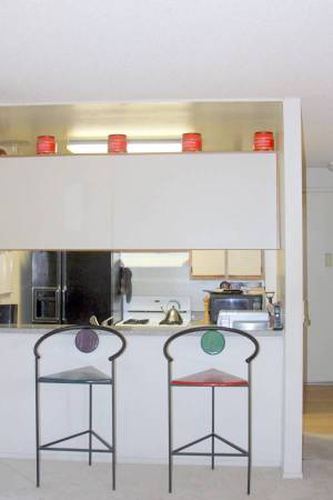 . Opens out to a Private Sunny Wrap Around Terrace, 6' x 16' + 6' x 6' with a Spa-Appointed Chaise Lounge with a beautiful view of the Hollywood Hills and Runyon Canyon.