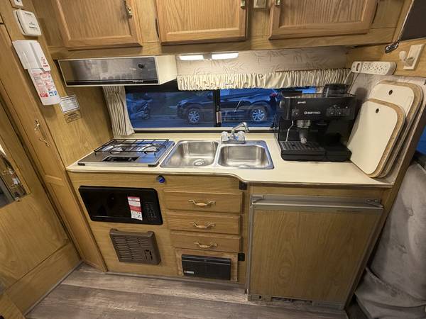 * Double stainless sink * Pressure demand Water pump * Dometic 3 cu. ft. refrigerator (3-way fridge (AC/DC/propane)*