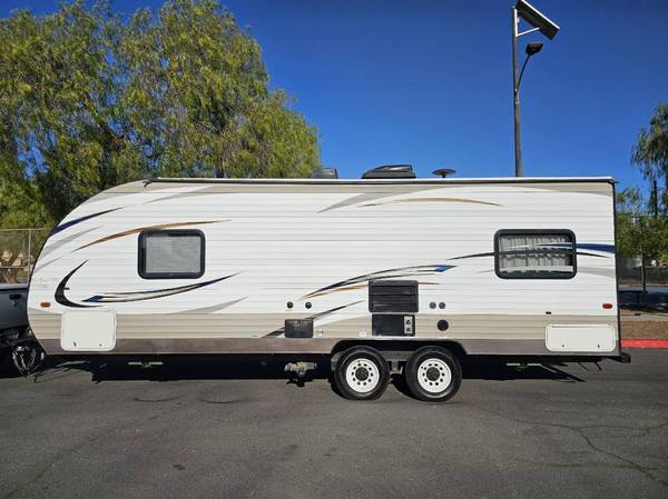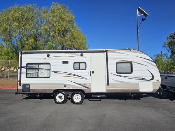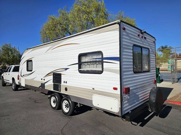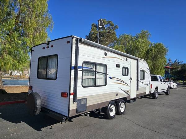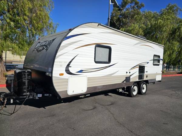 2018 Wildwood fully self contained equipped with power stabilizers, power tongue jack, power awning, full kitchen full bathroom ac and central heating, queen walkaround bed, jackknife Sofa and dining table converts into bed in great shape inside and out $12,500 call 619 748 7262