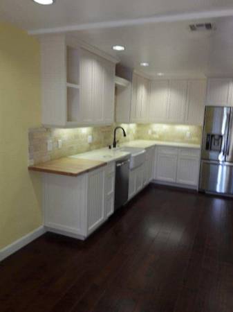 Refinishing is also available for new custom woodwork. We are able to perfectly match kitchen and bathroom cabinets or individual pieces of fine and/or antique furniture.