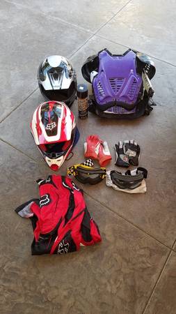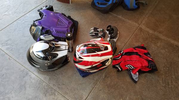 Riding Gear , 2 helments , 2 goggles , cloves , 1 chest protector