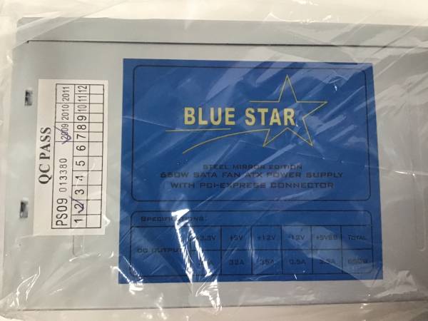 2009 Blue Star 650W Power Supply Steel Mirror Edition 650W SATA Fan ATX Power Supply W/ PCI Express Connector Open box Not tested, sold as is B23