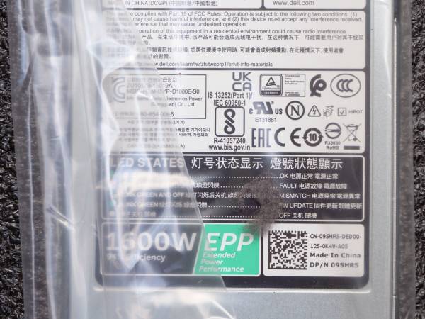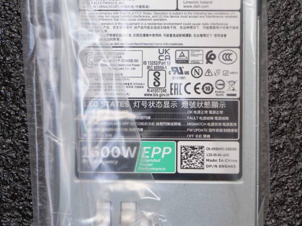 Dell PowerEdge D1600E-S0 1600W 80+ Platinum Switching Power Supply - dell d1600e-80 Multiples available.