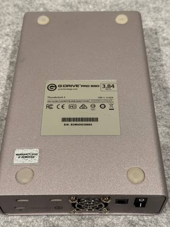 G-Drive Pro 3.84TB TB3 SSD external drive for sale. Includes TB3 cable and AC adapter. Original packaging also available should you desire, I’ll just need to grab it from my office. This is a serious piece of hardware for professional use. 2,800 mb/s read/write rates, making video editing a breeze.