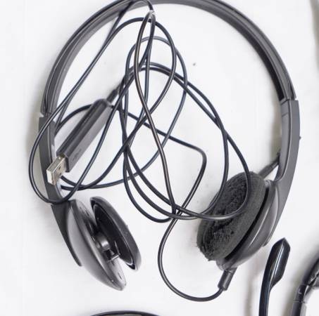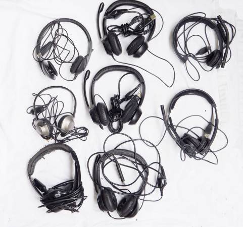 Lot of several Logitech Headphones. All in used shape and untested. Includes: Logitech H340 USB Wired Headset A-00044 With Noise Canceling Mic. Logitech DZL-A-00052 Stereo On-Ear Corded USB Headset w/ Microphone. Logitech H570e A-00063 USB 2.0 Wired Online Mono Headset, Logitech H570E (A-00064) Black Noise-Cancelling Mic and Creative Labs ChatMax HS-420 Silver/Black. These are used and untested. Foam is deteriorating on some. See pictures.