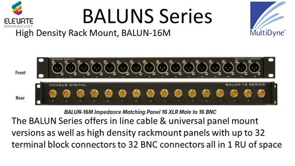 The BALUN Series offers in line cable & universal panel mount versions as well as high density rackmount panels.