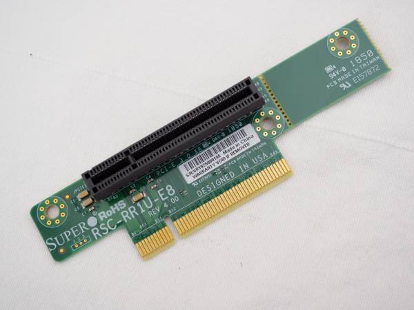 Riser Card Supermicro LHS PCI-Express x8 Server RSC-RR1U-E8 Used but good shape. From a working CSE-813M server I parted out. See photos. Had a raid card plugged into it. Does not include a mounting...