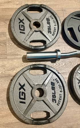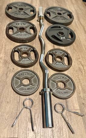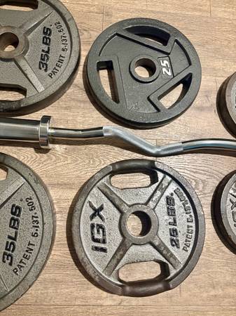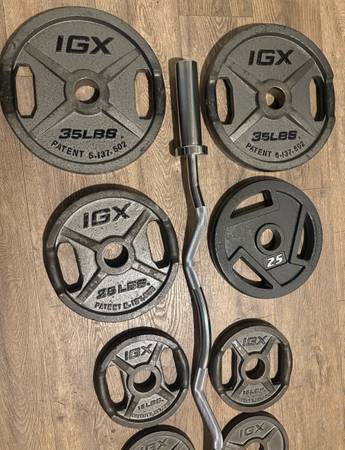 The Curl Bar is Brand New in its original cardboard tube. With cooper bearings for best movement in the weights area. The plates are being gently used in excellent shape and with grip to use them in...