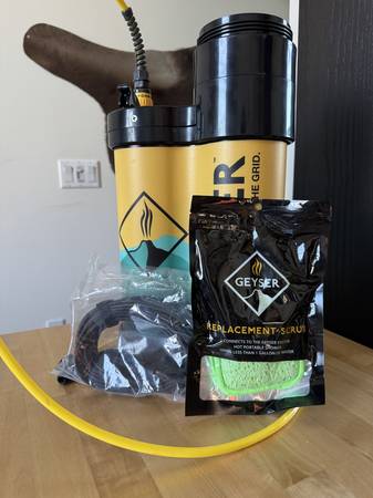 Geyser portable shower. uses less then a gallon of water. great for overloading or van life. Never used before. some of the items are in the original packaging. its around $320 brand new. please no...