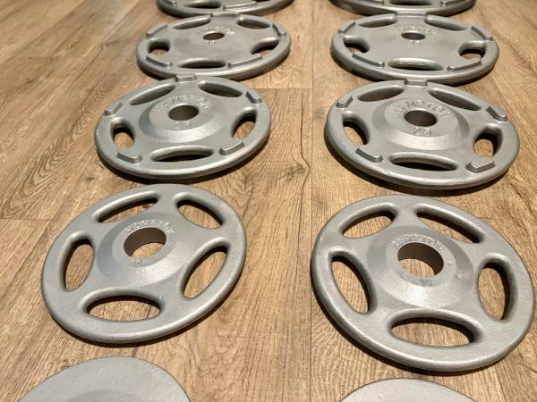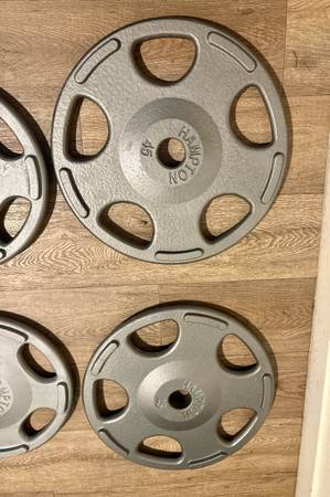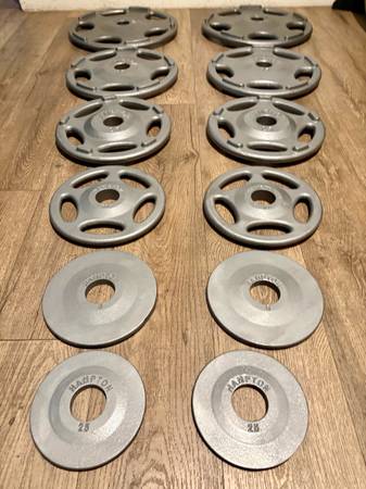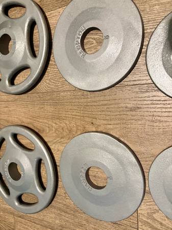 Very Unique and Beautiful Pure Iron. (2) plates 45s (2) plates 35s (2) plates 25s (2) plates 10s (2) plates 5s (2) plates 2.5s Total: 245 lbs