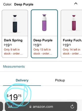 The Dopper water bottle has a 15. 25 ounce capacity and measures 9. 25 inches tall and 2. 25 inches in diameter.