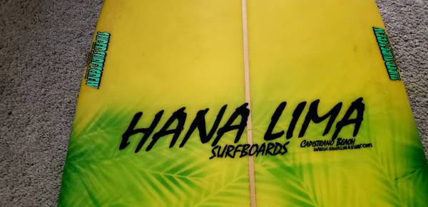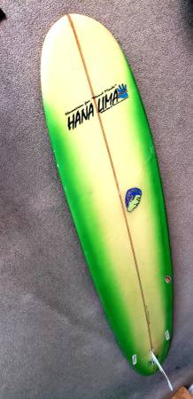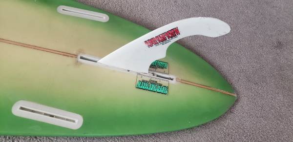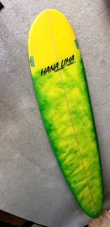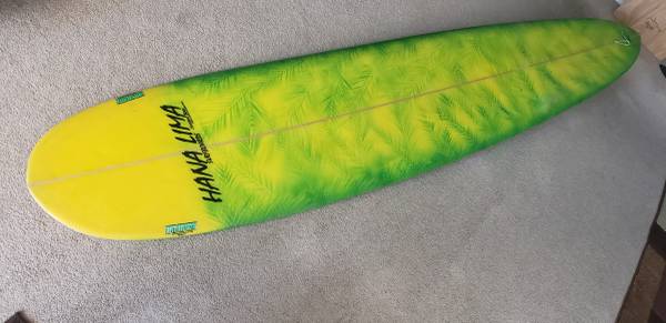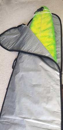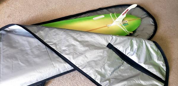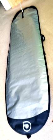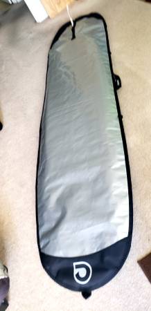 Surfboard 9 foot. Includes leash. Fin, new padded Carey bag.