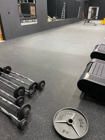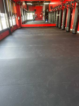 New gym mats rolls Thickness available 3/8” 1/2” Prices per square foot $2.25 $2.50 Delivery and installation available