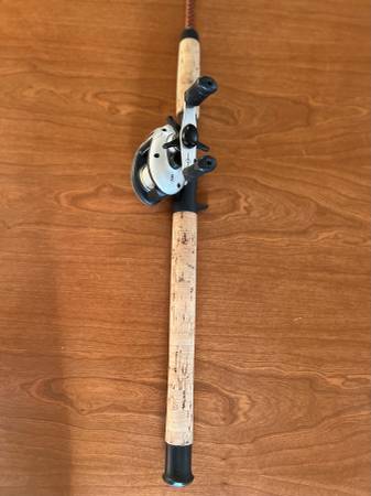 The rod is in excellent shape as you can see…even the cork handle is really clean…hasn’t seen much use. The reel is used but has excellent freespool and drags and can handle any hawg largemouth. Some scratches and scuffs but still functions great. It actually freespools better than some of my newer baitcaster. There’s some older 10 lb test on it in the pic but I will remove it and put fresh 10 Lb line on it. I actually feel like this ugly Stik would be better rated as a 10 to 20 or 8-20 lb stick…has nice flex but a bit more finesse than the newer ugly sticks on the market. Would make a good all around bass combo to throw crankbaits, spinnerbaits, worms and senkos.