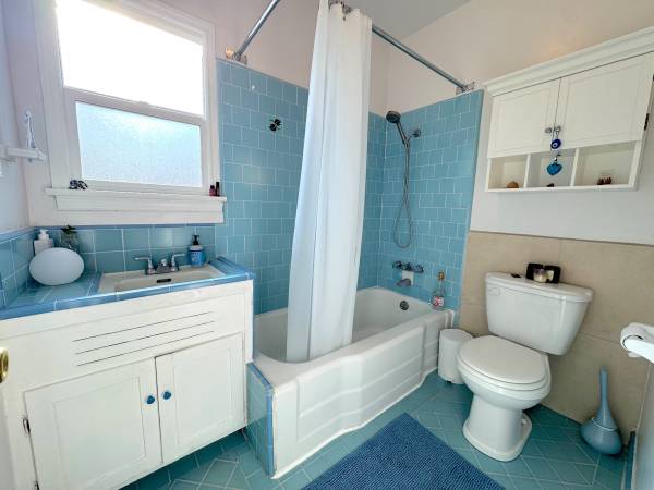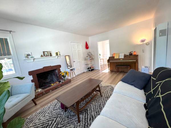 Fully furnished, living room with fireplace + piano + projector, California king bed, eat-in kitchen w/everything you'd need, sweet bathroom with a tub to soak in. Original vintage tiles, and all freshly renovated! Dyson vacuum, window AC, etc.