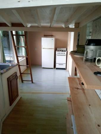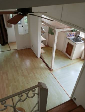 Features a private balcony, loft sleeping area, kitchenette, vintage 1925 charm, and electric water gas included (internet + laundry available).