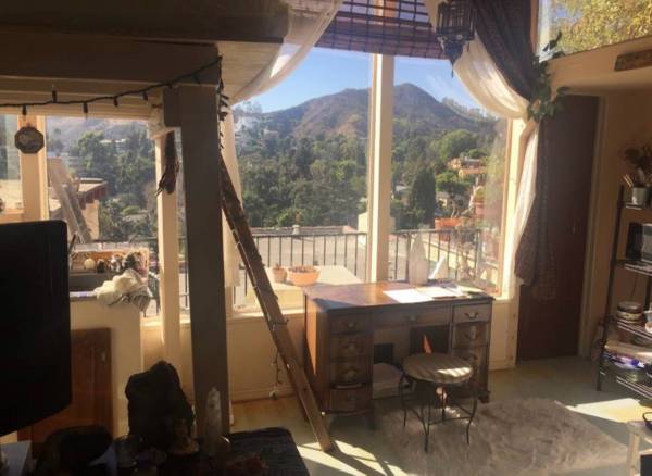 Creative furnished studio tree house style with sweeping Hollywood Hills views.