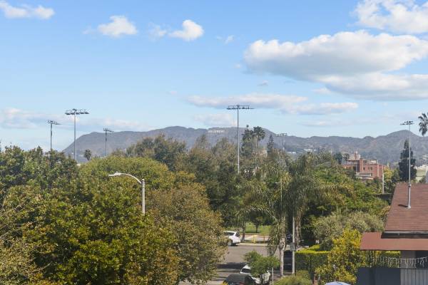 This is a great neighborhood with a view of the Hollywood sign from one bedroom and DTLA from the other.