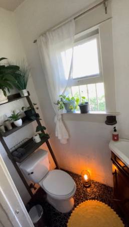 Room has private entrance with personal half bath (toilet + sink) and walk-in closet.