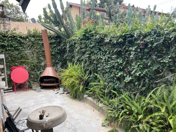 Room available in a small house with two bedrooms, one bathroom, kitchen, and living + dining room. Front patio and back with wrap-around garden.