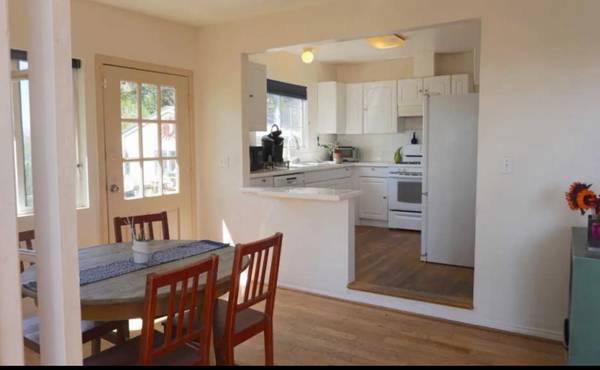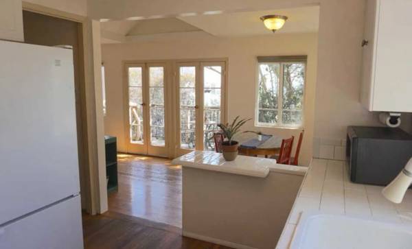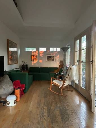 Open vaulted living room and kitchen with expansive deck; generous master bedroom; separate studio space that can be configured as bedroom. Walk in closet, central air/heat, washer/dryer, AND a separate studio space. Private parking space and ample street parking.