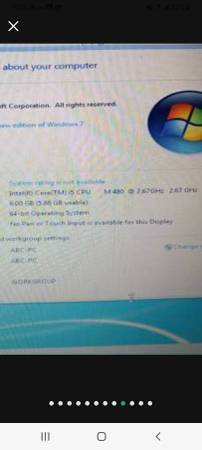 Is a 17.3" screen acer aspire. Intel i5 460m, 2 cores at 2.6ghz cpu speed, 6gb of memory, 500gb of hard drive storage. Radeon grafhics card high defenition. Hd 6550m 1gb. Needs software key and software installation. It was factory reset.