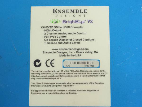 Ensemble Designs BrightEye 72 SDI to HDMI Converter See photos. Includes power supply.