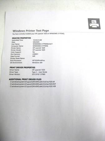 For Sale Used HP LaserJet 1020 Workgroup Laser Printer Q5911A. Works Fine. In Very Good Condition. 4785 Page Count. Comes with Power Cord Only. Nothing Else Is Included. Please, call (Voice), Text...