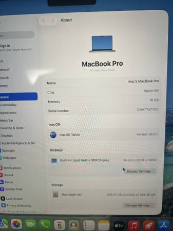 The MacBook is loaded with a fresh install of Tahoe OS, but i could take it back to Sequoia if needed