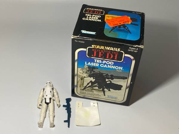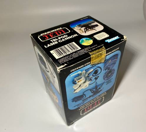 1982 Star Wars Kenner Return Of The Jedi Tri-Pod Laser Cannon with open box. Box is opened at the bottom, factory sealed at the top. Tripod laser cannon is complete, never handled, still sealed in...