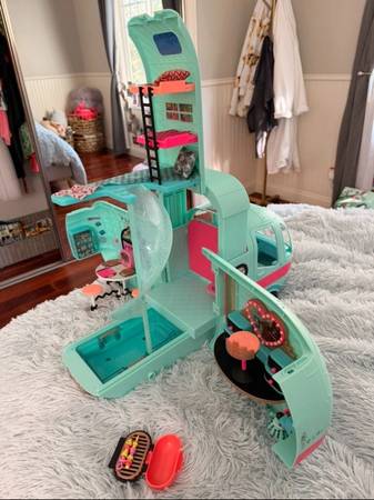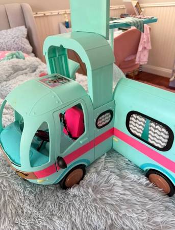 The Glamper Fashion Camper Dollhouse by L.O.L. Surprise! is a plastic doll vehicle set that includes accessories and a girl doll with big eyes. This product is part of the L.O.L. Surprise! product line by MGA and is designed for ages 4 years and up. The camper dollhouse comes in its original, unopened packaging and is battery-operated, making it an interactive and exciting addition to any doll collection. With its multiracial doll and a variety of accessories, this toy offers endless imaginative play for kids.