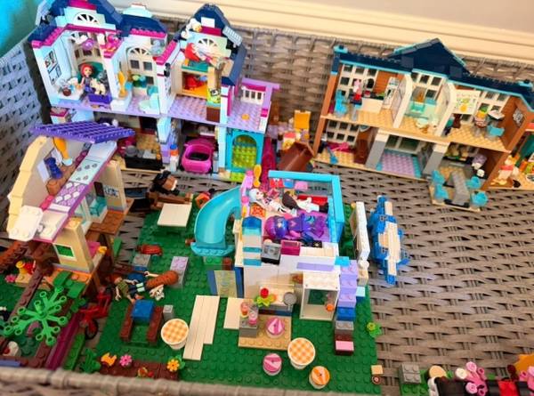 Multiple collections of LEGO FRIENDS sets. These sets are part of the Friends theme, known for their whimsical and detailed designs. Each set comes with various LEGO pieces to build and play with, including characters, vehicles, and accessories.