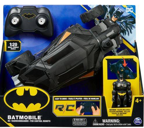 BATMOBILE RC: Chase crime in Gotham City with the remote-control Batmobile in 1:20 scale! This armored RC vehicle features easy-to-drive remote control, authentic comic-styling and details!