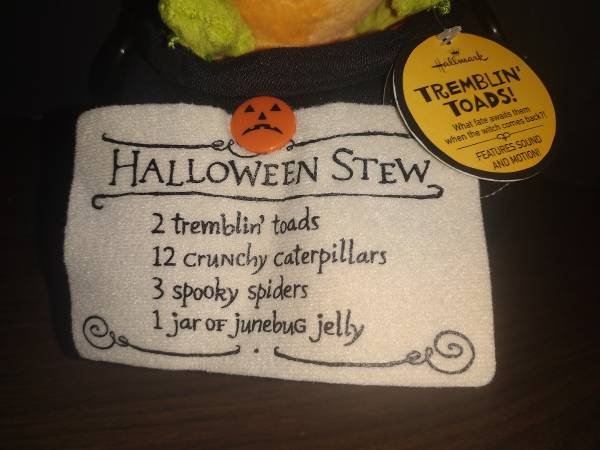 "BRAND NEW W TAG" Hallmark Tremblin Toads Sound Motion Halloween Witch Stew 12 Sings Cauldronk Tremblin Toads Sound Motion Halloween Witch Stew 12 Sings Cauldron. $15 Text is best for fastest...