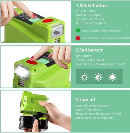 • 【Compatible with Ryobi 18V battery】: This Inverter for Ryobi 18V lithium battery P102 P103 P104 P105 P107 P108 P109 P190 ect and for Ryobi 18V Ni-Mh battery, Fit All Series batteries.