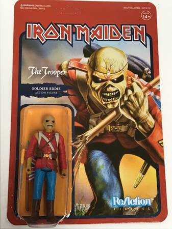 ReAction – Iron Maiden The Trooper Soldier Eddie Action Figure 3.75” tall figure 2017 Super7 ReAction figure Stored in plastic protector case Heavy metal, metal head Located near La Brea & W...
